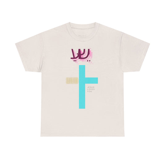 Unisex Heavy Cotton Tee - 'Jesus Loves You' Graphic Shirt - Casual Wear for Faith & Inspiration